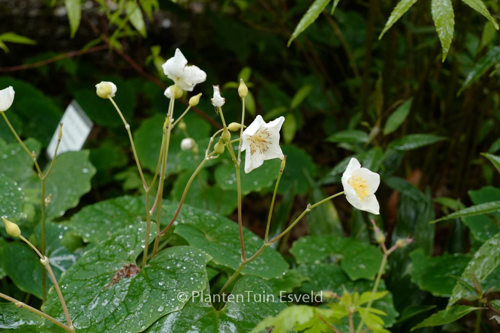 Schneemohn; monotypische Gehözrand-Staude aus China. Pflanzenhöhe n. 10 Jahren 30 cm. Die Blütenfarbe ist weiss. Die Blütezeit ist April – Juni. Diese Pflanze ist winterhart. Volksname : Schneemohn . . Nur auf Vorbestellung lieferbar.