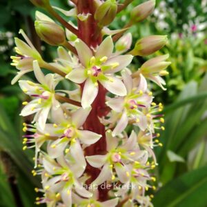 Schopflilie mit dunkel purpurrotem Laub; schlank und straff. Pflanzenhöhe rund 50 cm. Die Blütenfarbe ist hellrosa. Die Blütezeit ist Juli – August. Diese Pflanze ist nicht sehr winterhart. Anzahl pro Qm : 9. Volksname : Schopflilie . . Ist anwesend in unsere Pflanzenladen. Bitte sehen Sie im Aktuelle Vorrat.