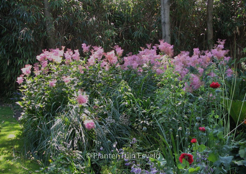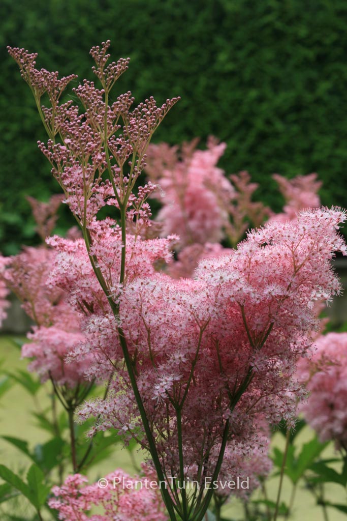 Federartige, gut duftende Doldenrispen; feuchter Standort. Pflanzenhöhe rund 1,25 m. Die Blütenfarbe ist rosarot. Die Blütezeit ist Juli – August. Diese Pflanze ist winterhart. Anzahl pro Qm : 5. Volksname : Spierstaude . Diese Pflanze hat die folgende Auszeichnung: AGM, Award of Garden Merit, 1993. . Nur auf Vorbestellung lieferbar.