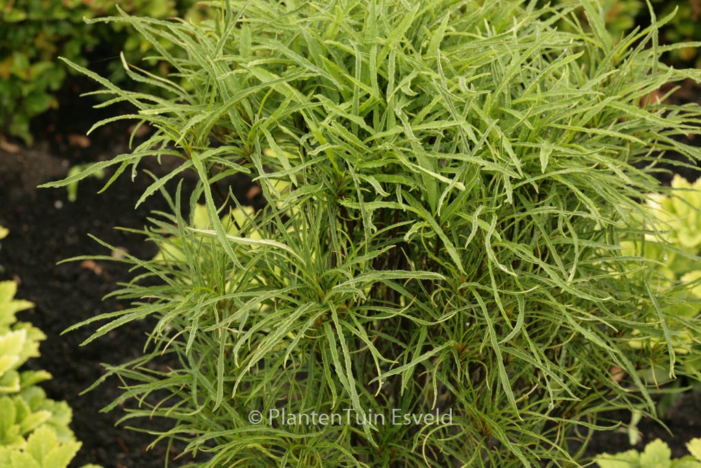 Blatt sehr schmal und gewellt; Wuchs schlank aufrecht. Pflanzenhöhe n. 10 Jahren 3 meter. Die Blütenfarbe ist wit. Die Blütezeit ist Dezember. Diese Pflanze ist vollkommen winterhart. Anzahl pro Qm : 1. . Nur auf Vorbestellung lieferbar.