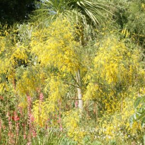 Grosser Strauch / kleiner Baum; endemisch auf Sizilien. Pflanzenhöhe n. 10 Jahren 3 meter. Die Blütenfarbe ist goldgelb. Die Blütezeit ist Juni – Juli. Diese Pflanze ist winterhart. Anzahl pro Qm : 1. Volksname : Aetna ginster . Diese Pflanze hat die folgende Auszeichnung: AGM, Award of Garden Merit, 1993. Ist anwesend in unsere Pflanzenladen. Bitte sehen Sie im Aktuelle Vorrat.