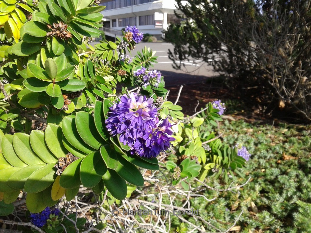 Seewindbeständig undimmergrün; sonniger Standort. Pflanzenhöhe n. 10 Jahren 75 cm. Die Blütenfarbe ist lilablau. Die Blütezeit ist August – September. Diese Pflanze ist nicht sehr winterhart. Volksname : Strauchveronika . . Nur auf Vorbestellung lieferbar. .