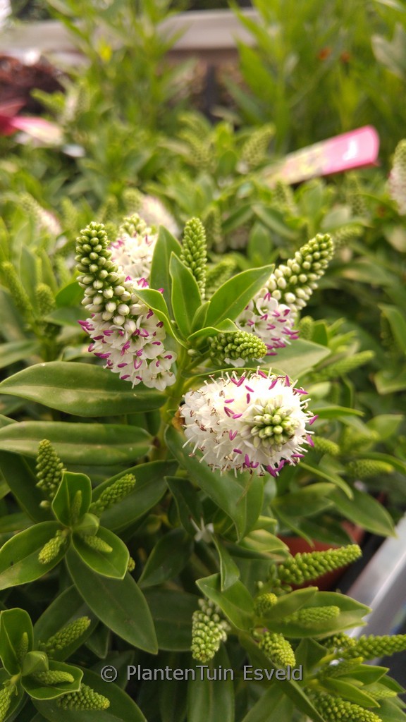 Kompakt und dichtverzweigt; wintergrün; reicher Flor. Pflanzenhöhe n. 10 Jahren 40 cm. Die Blütenfarbe ist weiss. Die Blütezeit ist August – Oktober. Diese Pflanze ist nicht sehr winterhart. Volksname : Strauchveronika . . Nur auf Vorbestellung lieferbar.
