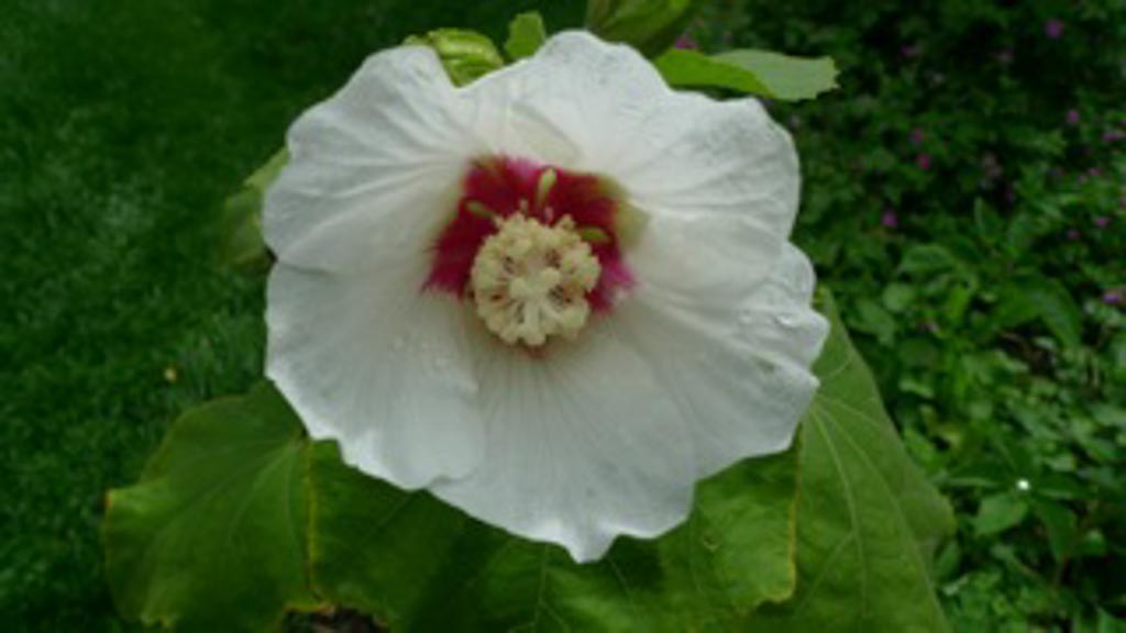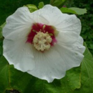 Blüten auffallend weiss, weinrote Mitte; Blatt grober. Pflanzenhöhe n. 10 Jahren 2. 5 m. Die Blütenfarbe ist schneeweiss mit weinrot. Die Blütezeit ist Juli – August. Diese Pflanze ist winterhart. . . Nur auf Vorbestellung lieferbar.