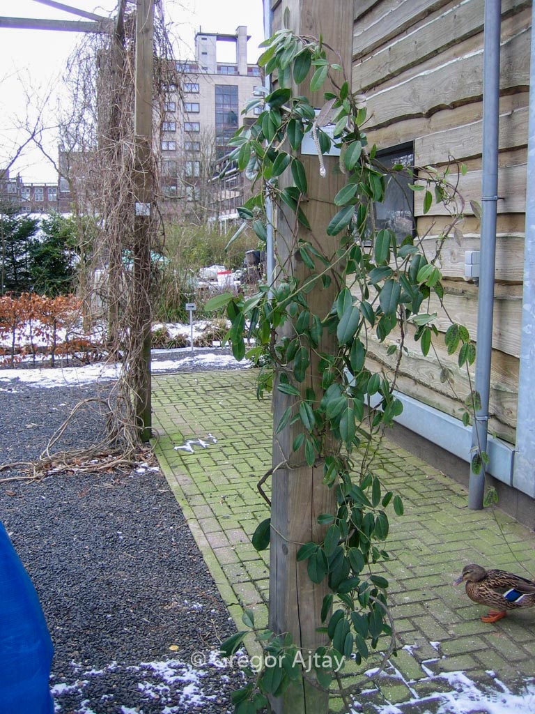 Wurstbeere; immergrün; grosse rosa-violette Früchte. Pflanzenhöhe n. 10 Jahren 4 meter. Die Blütenfarbe ist grünlich weiss. Die Blütezeit ist Juni. Diese Pflanze ist nicht sehr winterhart. . . Nur auf Vorbestellung lieferbar.