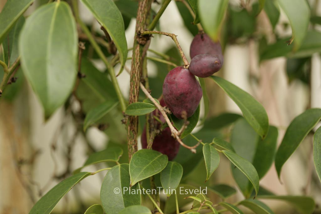 Wurstbeere; immergrün; grosse rosa-violette Früchte. Pflanzenhöhe n. 10 Jahren 4 meter. Die Blütenfarbe ist grünlich weiss. Die Blütezeit ist Juni. Diese Pflanze ist nicht sehr winterhart. . Ist anwesend in unsere Pflanzenladen. Bitte sehen Sie im Aktuelle Vorrat. .