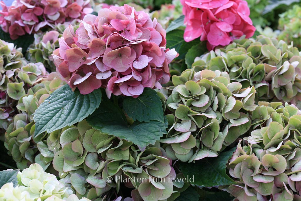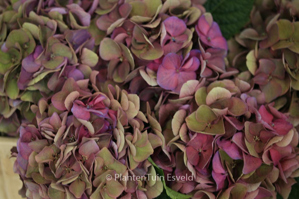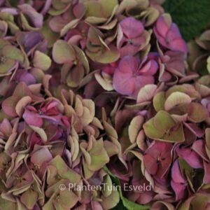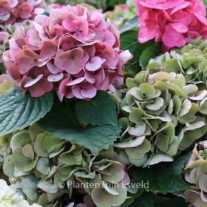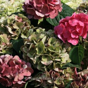 Ballhortensie für Schnittblumen; Farbwechsel-Sorte. Pflanzenhöhe n. 10 Jahren 1,5 meter. Die Blütenfarbe ist dunkelrosa nach grün. Die Blütezeit ist Juli – September. Diese Pflanze ist vollkommen winterhart. Anzahl pro Qm : 2. Volksname : Hortensie . . Nur auf Vorbestellung lieferbar.