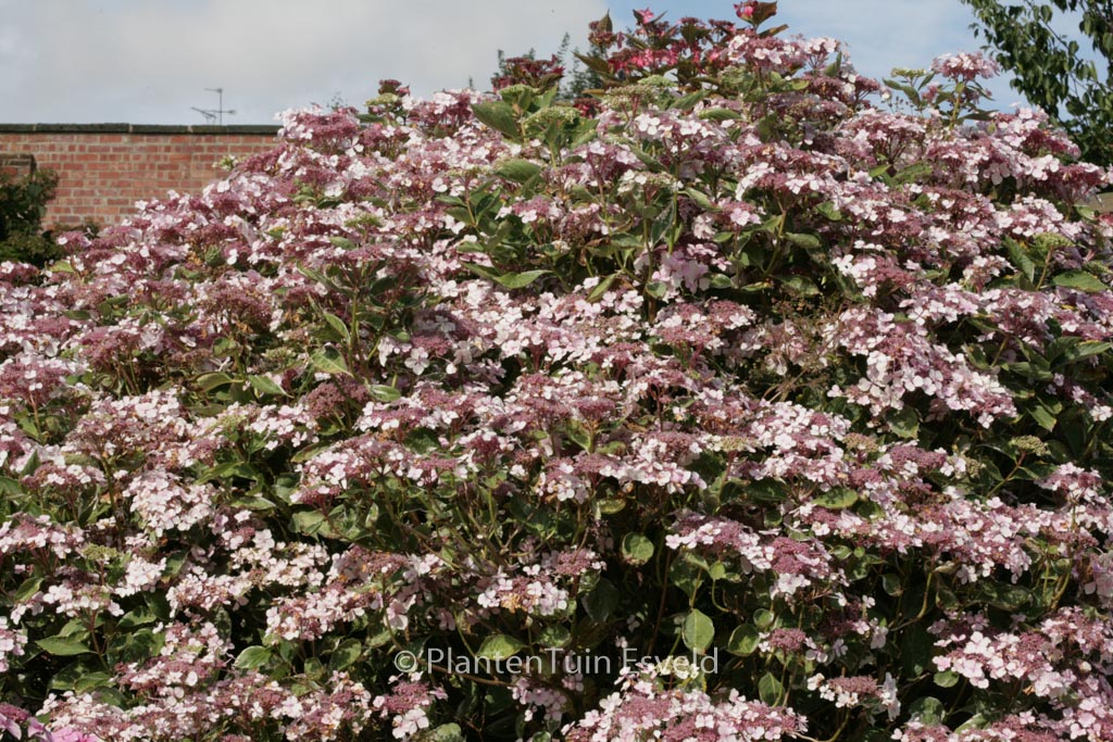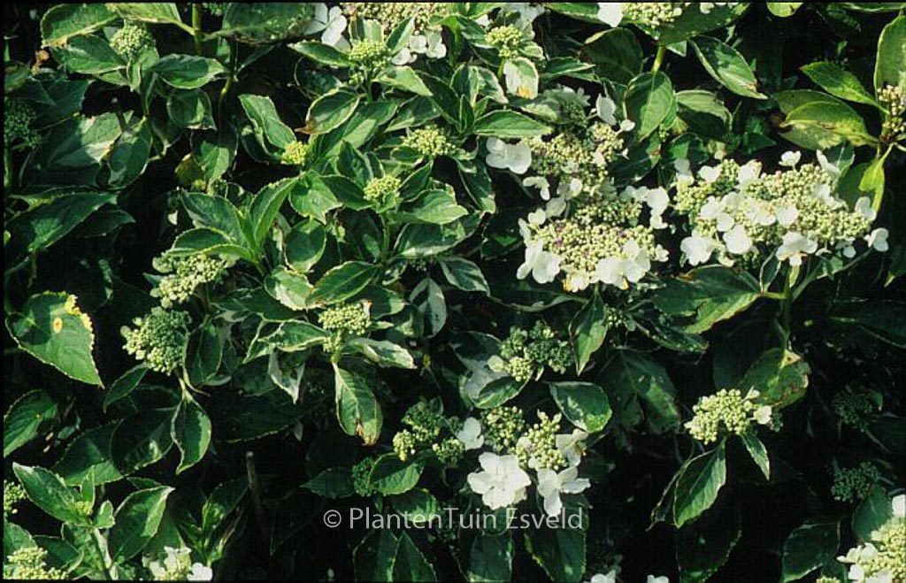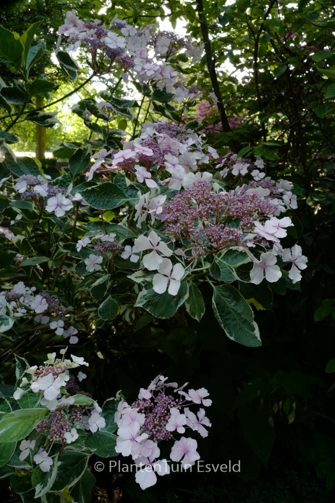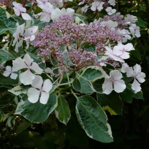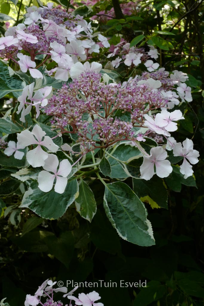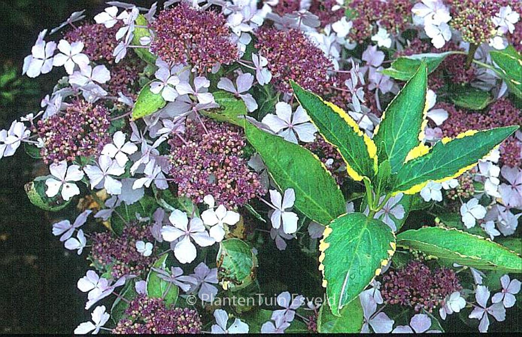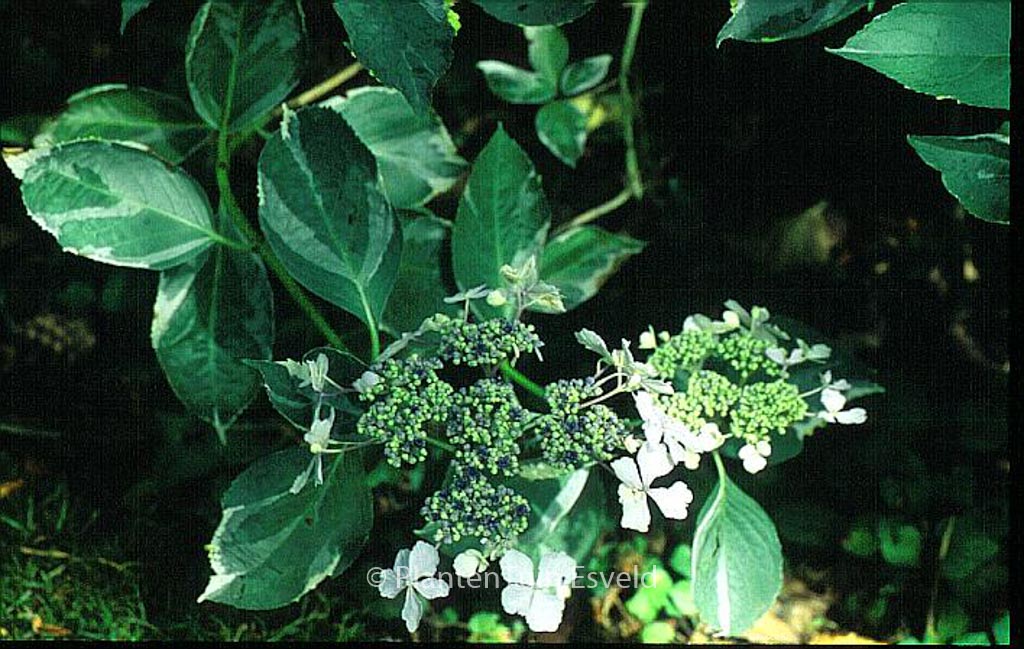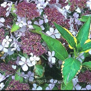 Blatt vierfarbig-panaschiert (stabil); schwer zu vermehren. Pflanzenhöhe n. 10 Jahren 1 meter. Die Blütenfarbe ist zartrosa / sehr hellblau. Die Blütezeit ist Juli – August. Diese Pflanze ist winterhart. Anzahl pro Qm : 2. Volksname : Hortensie . . Nur auf Vorbestellung lieferbar.