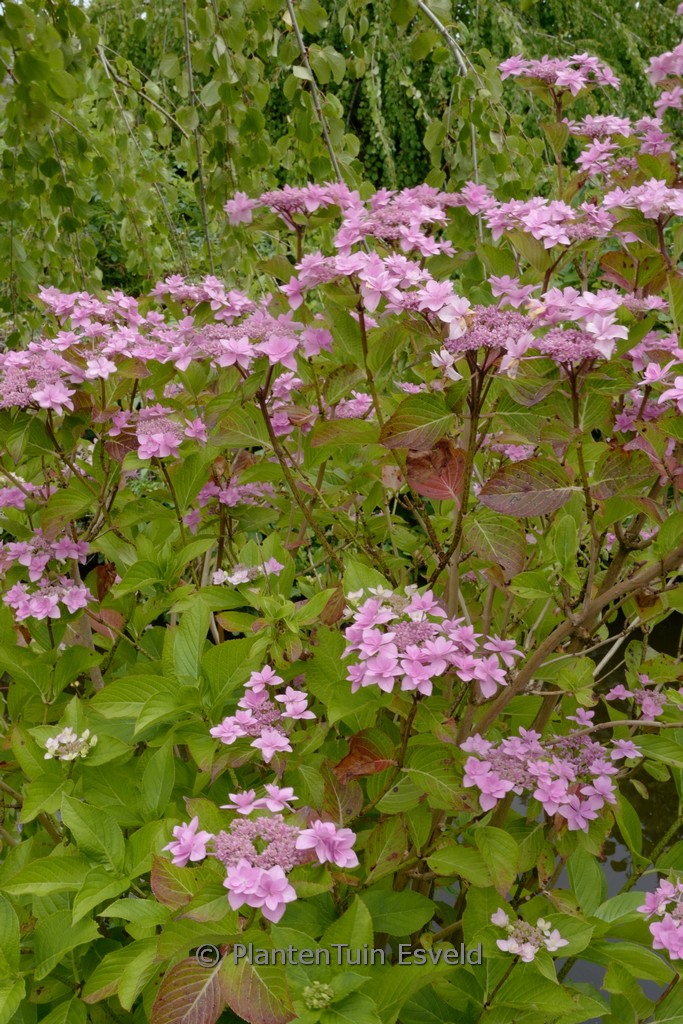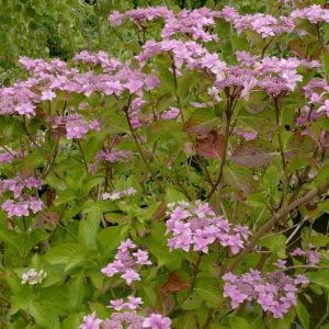 Schirmblumige mit gefüllten Randblumen; vergl. ‚Hanabi‘. Pflanzenhöhe n. 10 Jahren 1,25 m. Die Blütenfarbe ist zart lila-blau. Die Blütezeit ist Juli – August. Diese Pflanze ist winterhart. Volksname : Hortensie . . Nur auf Vorbestellung lieferbar.