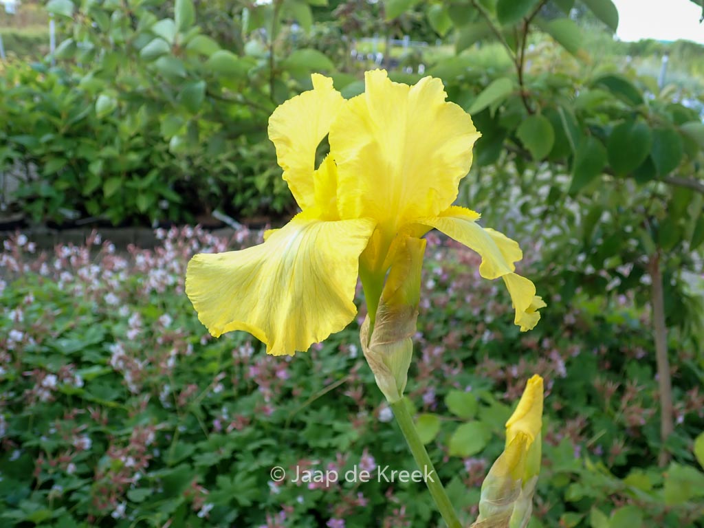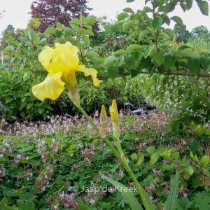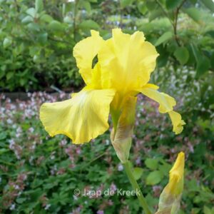 Blüten mit gewelltem Rand. Pflanzenhöhe rund 1 meter. Die Blütenfarbe ist gelb. Die Blütezeit ist Mai – Juni. Diese Pflanze ist vollkommen winterhart. Anzahl pro Qm : 5. Volksname : Bart-iris . . Nur auf Vorbestellung lieferbar.
