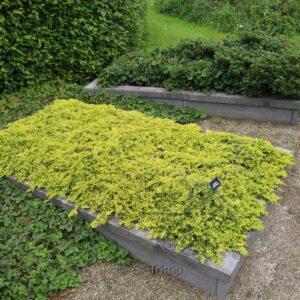 Gelbgrüne Nadeln;Wuchs weitausladend bodendeckend. Pflanzenhöhe n. 10 Jahren 20 cm. Diese Pflanze ist winterhart. Anzahl pro Qm : 3. Volksname : Wacholder . Diese Pflanze hat die folgende Auszeichnung: AGM, Award of Garden Merit, 2012. . Nur auf Vorbestellung lieferbar.