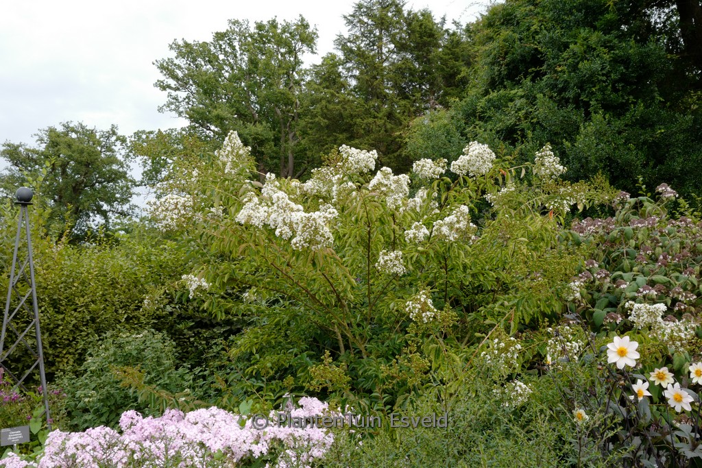 Vasenförmig und gutverzweigt; orange-rote Herbstfarbe. Pflanzenhöhe n. 10 Jahren 2,5 m. Die Blütenfarbe ist weiss. Die Blütezeit ist August – September. Diese Pflanze ist nicht sehr winterhart. Anzahl pro Qm : 1. Volksname : Kreppmyrte . Ist anwesend in unsere Pflanzenladen. Bitte sehen Sie im Aktuelle Vorrat.