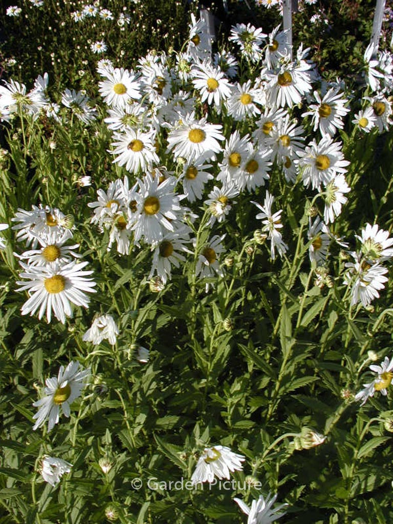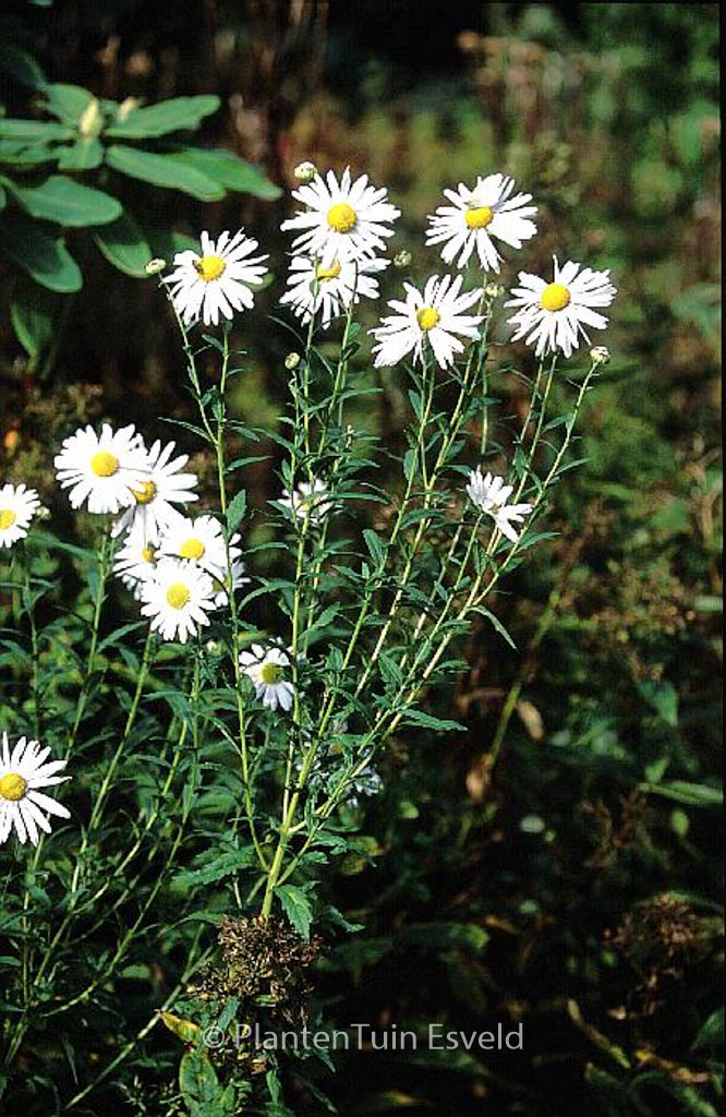 Überreich blühende Herbstmargerite. Pflanzenhöhe rund 1,5 m. Die Blütenfarbe ist weiss. Die Blütezeit ist September – Oktober. Diese Pflanze ist vollkommen winterhart. Anzahl pro Qm : 5. . Nur auf Vorbestellung lieferbar.
