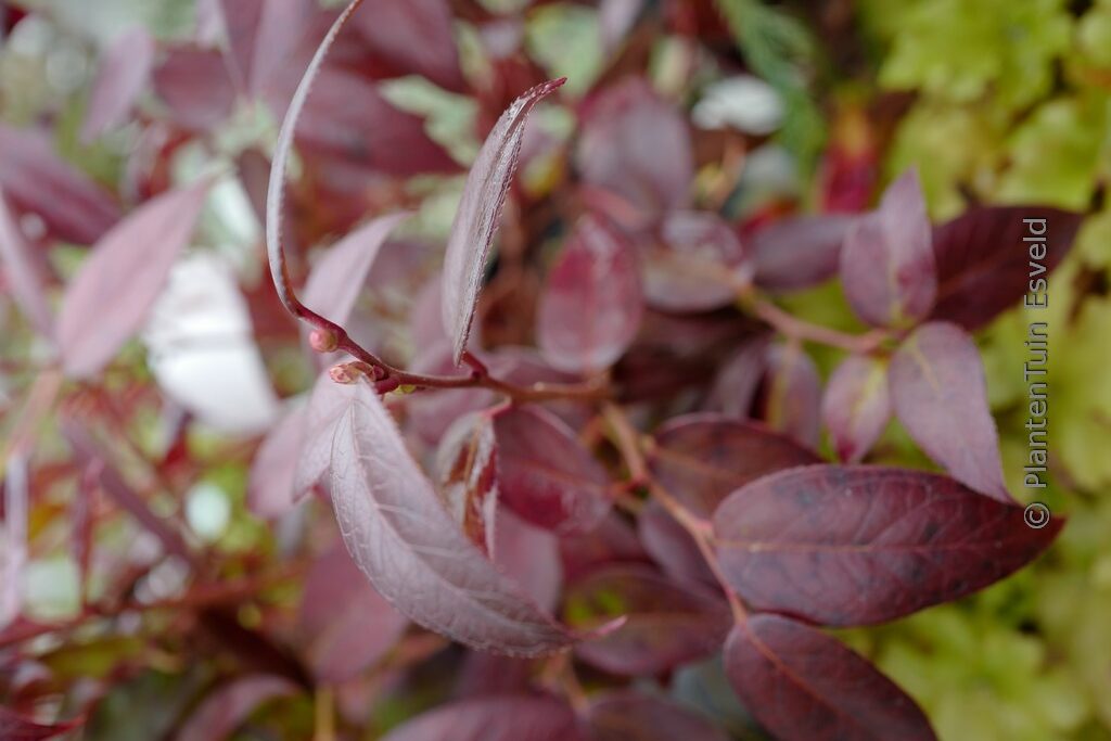Blatt färbt im Winter prachtvoll dunkel purpurrot. Pflanzenhöhe n. 10 Jahren 75 cm. Die Blütenfarbe ist weiss (duftend). Die Blütezeit ist Mai – Juni. Diese Pflanze ist winterhart. Anzahl pro Qm : 3. Ist anwesend in unsere Pflanzenladen. Bitte sehen Sie im Aktuelle Vorrat.