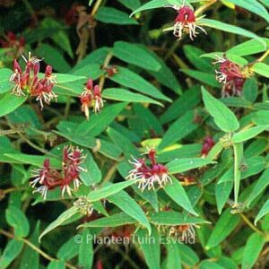 Blätter sehr samtig-weich behaart; aus China. Pflanzenhöhe n. 10 Jahren 2,5 meter. Die Blütenfarbe ist rot; Beeren blau-schwarz. Die Blütezeit ist Juni – Juli. Diese Pflanze ist winterhart. Anzahl pro Qm : 1. Volksname : Heckenkirsche . . Nur auf Vorbestellung lieferbar.