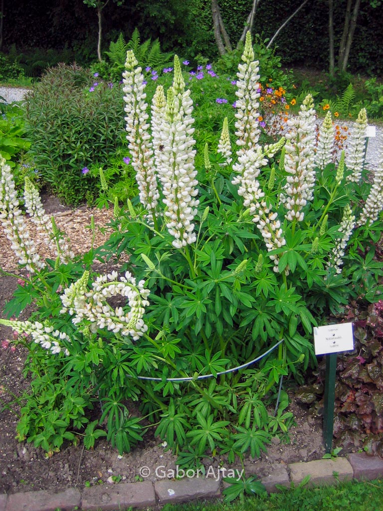 Starke Staudenlupine; auch als Solitärpflanze verwendbar. Pflanzenhöhe rund 90 cm. Die Blütenfarbe ist weiss. Die Blütezeit ist Juni – Juli. Diese Pflanze ist winterhart. Anzahl pro Qm : 5. Volksname : Lupine . . Nur auf Vorbestellung lieferbar.