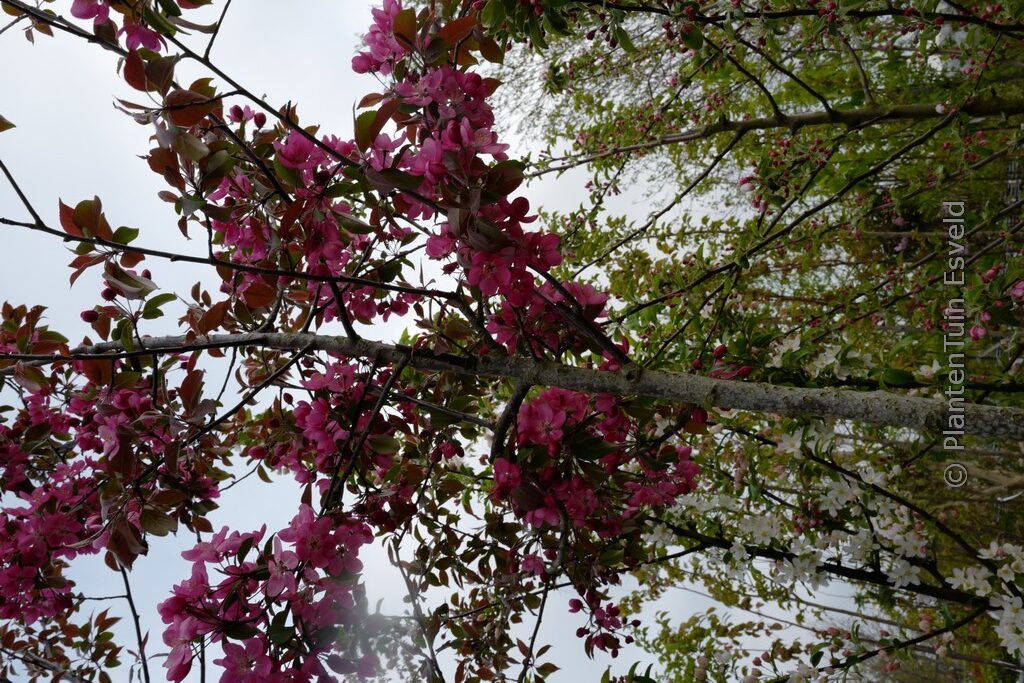 Rundkroniger Baum, im Austrieb bronze; Früchte karminrot. Pflanzenhöhe n. 10 Jahren 4 m. Die Blütenfarbe ist dunkel rosarot. Die Blütezeit ist Mai. Diese Pflanze ist vollkommen winterhart. Anzahl pro Qm : 1. Volksname : Apfel . Ist anwesend in unsere Pflanzenladen. Bitte sehen Sie im Aktuelle Vorrat.