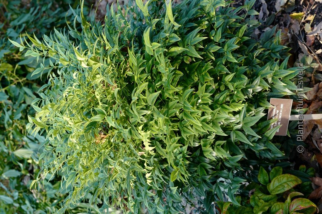 Rundlich-kompakt mitfrisch grüngelbem Laub. Pflanzenhöhe n. 10 Jahren 1 meter. Die Blütenfarbe ist weiss. Die Blütezeit ist Juli – August. Diese Pflanze ist nicht sehr winterhart. Anzahl pro Qm : 2. Volksname : Heiliger bambus . Diese Pflanze hat die folgende Auszeichnung: Goldmedaille Fachbörse Plantarium 2014. Ist anwesend in unsere Pflanzenladen. Bitte sehen Sie im Aktuelle Vorrat.