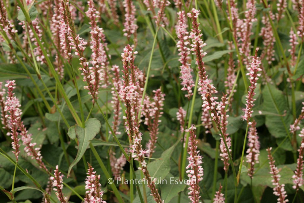 Schön in Kombination mit z. B. Sambucus ‚Black Lace‘!. Pflanzenhöhe rund 1 meter. Die Blütenfarbe ist rosa; dunkle Stängel. Die Blütezeit ist Juli – November. Diese Pflanze ist vollkommen winterhart. Anzahl pro Qm : 3. Volksname : Knöterich . . Nur auf Vorbestellung lieferbar.