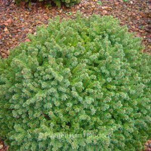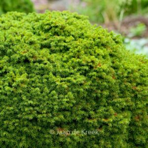 Geschlossen halbkugeligeZwergform; dichtstehende Nadeln. Pflanzenhöhe n. 10 Jahren 25 cm. Diese Pflanze ist vollkommen winterhart. Volksname : Fichte . Diese Pflanze hat die folgende Auszeichnung: AGM, Award of Garden Merit, 1993, dazu Getuigschrift van Verdienste 1e Klasse 1967. . Nur auf Vorbestellung lieferbar.