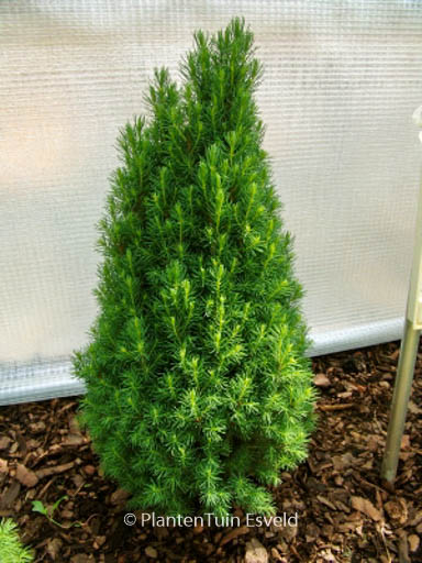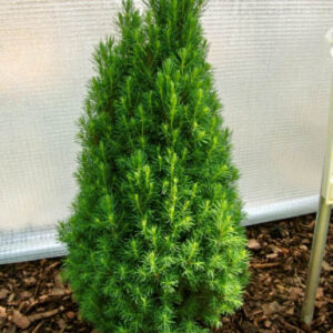 Sehr gedrungen wachsende Zwergform der Zuckerhut-Fichte. Pflanzenhöhe n. 10 Jahren 60 cm. Diese Pflanze ist vollkommen winterhart. Volksname : Fichte . . Nur auf Vorbestellung lieferbar.