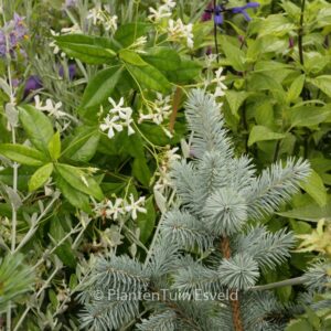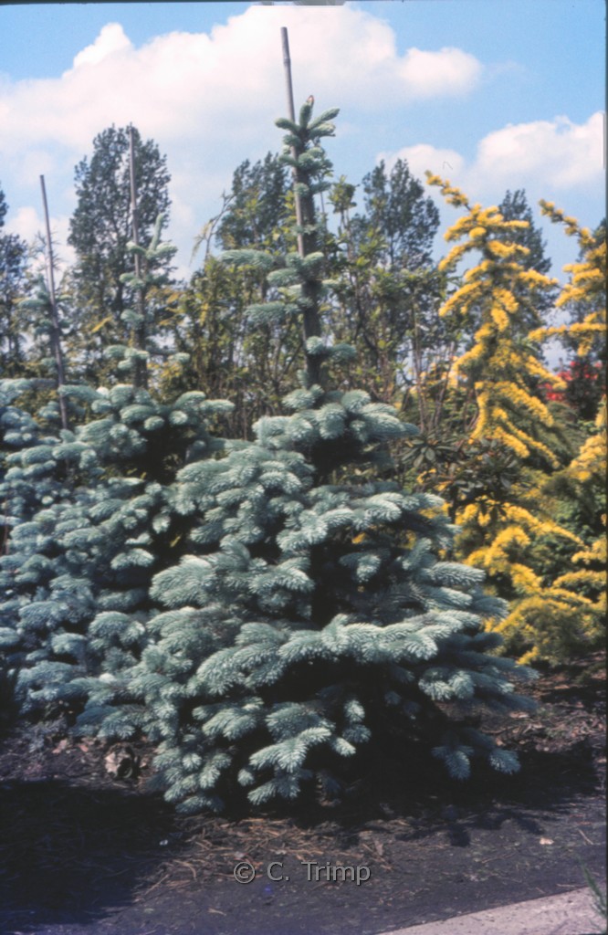 Nadeln silberblau; Kronebreit kegelartig; dicht aufgebaut. Pflanzenhöhe n. 10 Jahren 3 meter. Diese Pflanze ist vollkommen winterhart. Volksname : Fichte . Diese Pflanze hat die folgende Auszeichnung: AGM, Award of Garden Merit, 1993. Ist anwesend in unsere Pflanzenladen. Bitte sehen Sie im Aktuelle Vorrat.