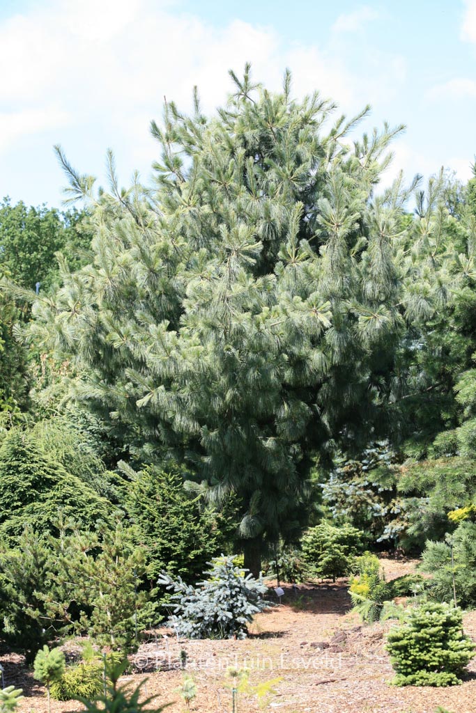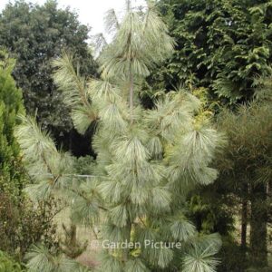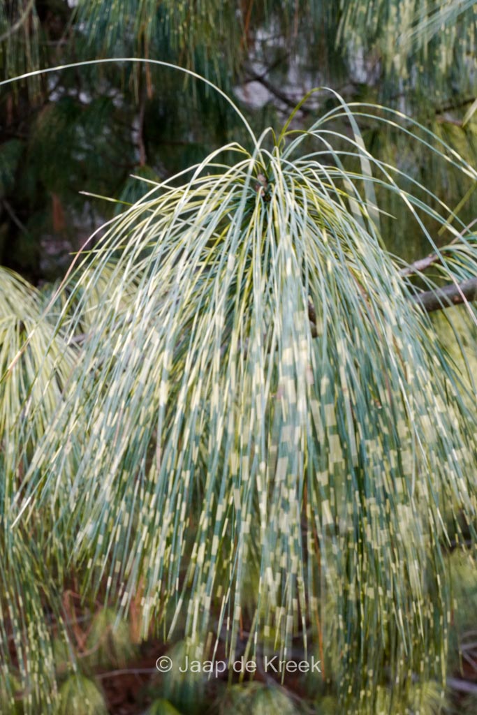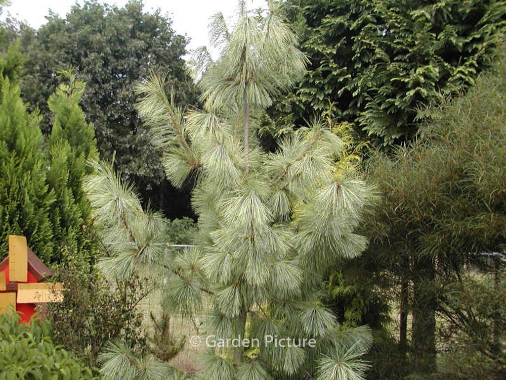 Gelbgestreifte Tränen-Kiefer; unverwechselbarer gr. Baum. Pflanzenhöhe n. 10 Jahren 5 meter. Diese Pflanze ist vollkommen winterhart. Anzahl pro Qm : 1. . Nur auf Vorbestellung lieferbar.