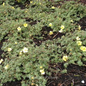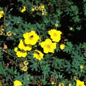 Wuchs bodendeckend, kriechend; Blatt graugrün. Pflanzenhöhe n. 10 Jahren 35 cm. Die Blütenfarbe ist strahlend gelb. Die Blütezeit ist Juni – September. Diese Pflanze ist vollkommen winterhart. Anzahl pro Qm : 4. Volksname : Fingerstrauch . Diese Pflanze hat die folgende Auszeichnung: AGM, Award of Garden Merit, 2002. . Nur auf Vorbestellung lieferbar.