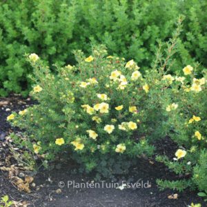 Heckenstrauch; alle paar Jahre scharf zurückschneiden. Pflanzenhöhe n. 10 Jahren 50 cm. Die Blütenfarbe ist gelb. Die Blütezeit ist Mai – August. Diese Pflanze ist winterhart. Volksname : Fingerstrauch . . Nur auf Vorbestellung lieferbar.