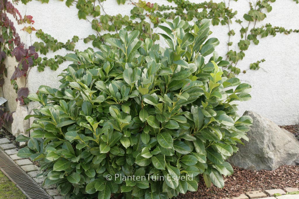 Immergrüne Lorbeerkirsche; Blatt gross u. glänzend. Pflanzenhöhe n. 10 Jahren 2 meter. Die Blütenfarbe ist weiss. Die Blütezeit ist Mai. Diese Pflanze ist winterhart. Anzahl pro Qm : 2. Diese Pflanze hat die folgende Auszeichnung: AGM, Award of Garden Merit, 2012, dazu Goldmedaille Fachbörse Plantarium 1994. . Nur auf Vorbestellung lieferbar.