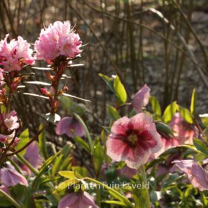 Racemosum-Hybride; sehrlangsamer Wuchs; reiche Blüte. Pflanzenhöhe n. 10 Jahren 1 meter. Die Blütenfarbe ist rosa. Die Blütezeit ist April – Mai. Diese Pflanze ist winterhart. Mögliche Alternative : Rhododendron ‚Donna Totten‘. Wichtigster Unterschied: Beide Gruppe 23 , Kode C2, rosa. Ist anwesend in unsere Pflanzenladen. Bitte sehen Sie im Aktuelle Vorrat.