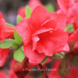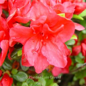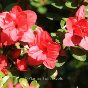 Japanische Azalee mithalbgefüllten Blüten. Pflanzenhöhe n. 10 Jahren 75 cm. Die Blütenfarbe ist leuchtend rosarot. Die Blütezeit ist Mai. Diese Pflanze ist nicht sehr winterhart. . Diese Pflanze hat die folgende Auszeichnung: AGM, Award of Garden Merit, 1993, dazu Getuigschrift van Verdienste 1e Klasse 1959. Ist anwesend in unsere Pflanzenladen. Bitte sehen Sie im Aktuelle Vorrat.