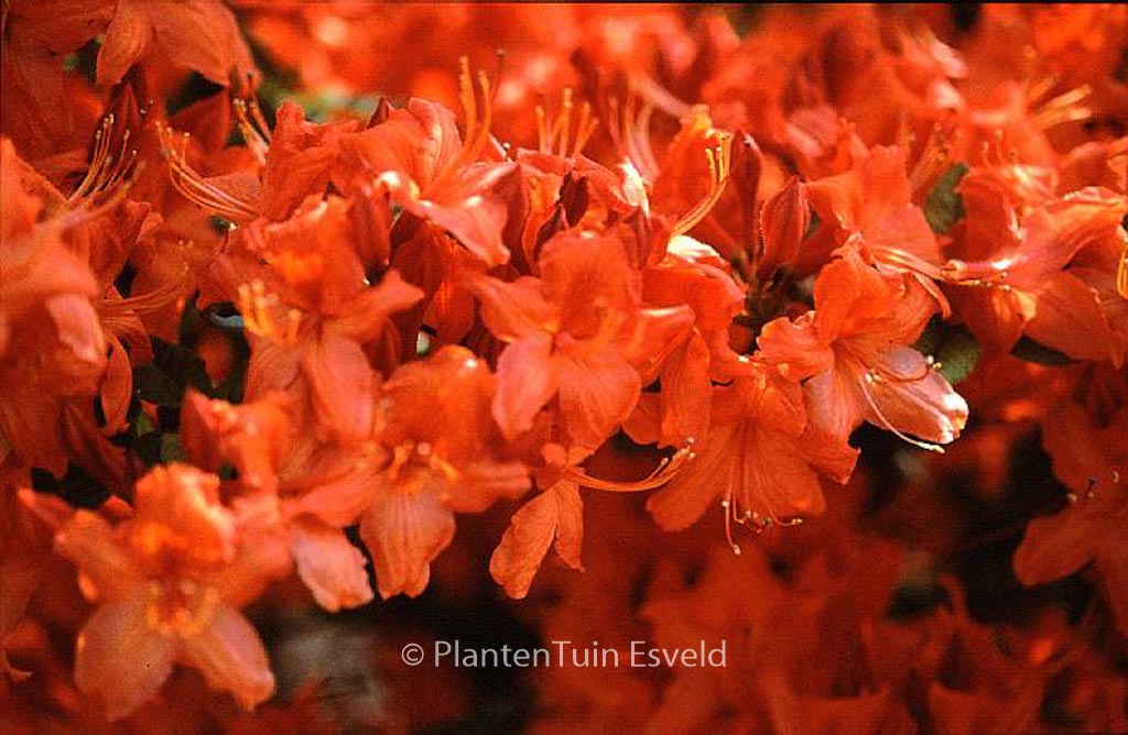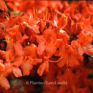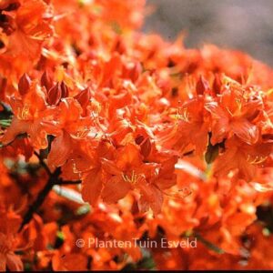 Knap Hill-Luteum Hybride;breitbuschig, gut verzweigt. Pflanzenhöhe n. 10 Jahren 2 meter. Die Blütenfarbe ist leuchtend orangerot. Die Blütezeit ist Mai – Juni. Diese Pflanze ist vollkommen winterhart. . Diese Pflanze hat die folgende Auszeichnung: AGM, Award of Garden Merit, 1993. . Nur auf Vorbestellung lieferbar.