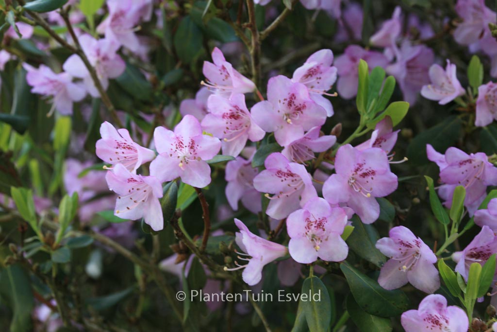 Zierliche Art mitaromatischem Blatt. Pflanzenhöhe n. 10 Jahren 2 m. Die Blütenfarbe ist sehr hell rosalila. Die Blütezeit ist April. Diese Pflanze ist vollkommen winterhart. Anzahl pro Qm : 1. Diese Pflanze hat die folgende Auszeichnung: AGM, Award of Garden Merit, 2012. Ist in die Baumschule anwesend, aber muss vorbestellt werden.