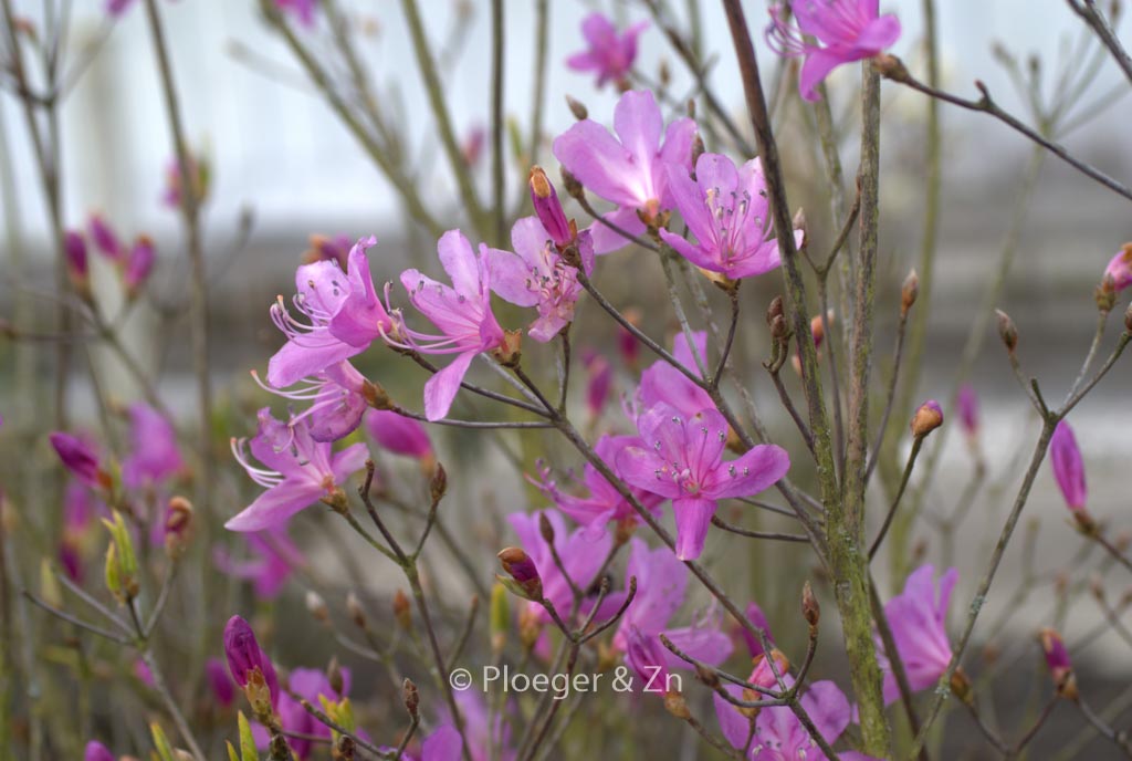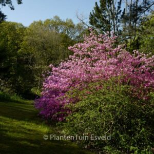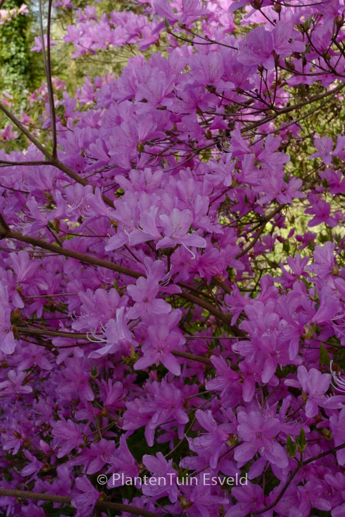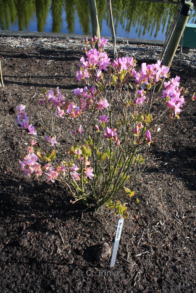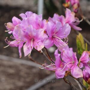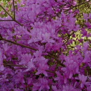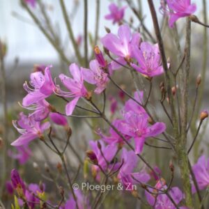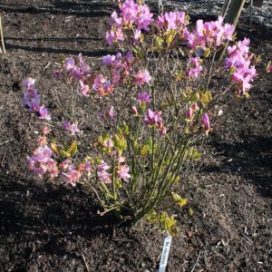 Sommergrüne Azaleemit schöner Herbstfarbe. Pflanzenhöhe n. 10 Jahren 1,5 m. Die Blütenfarbe ist lilarosa. Die Blütezeit ist April – Mai. Diese Pflanze ist vollkommen winterhart. . Ist anwesend in unsere Pflanzenladen. Bitte sehen Sie im Aktuelle Vorrat.