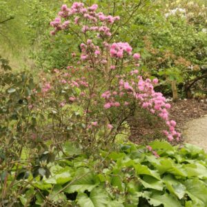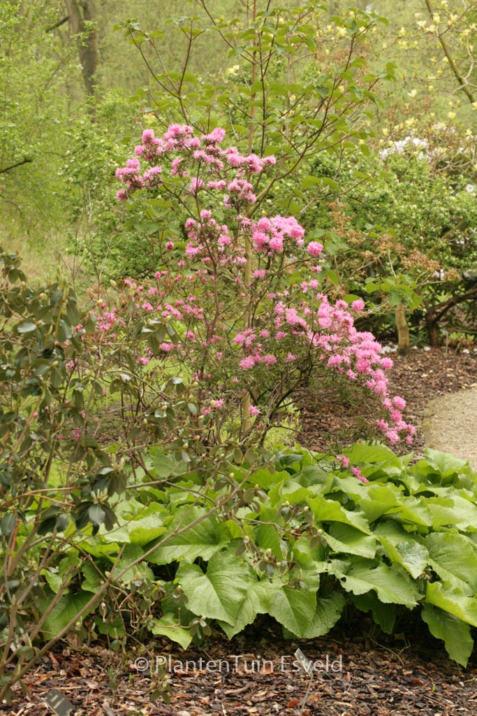 Zierliche Art aus denBergwäldern von China. Pflanzenhöhe n. 10 Jahren 1,25 m. Die Blütenfarbe ist rosa. Die Blütezeit ist April. Diese Pflanze ist winterhart. Anzahl pro Qm : 5. Ist anwesend in unsere Pflanzenladen. Bitte sehen Sie im Aktuelle Vorrat.