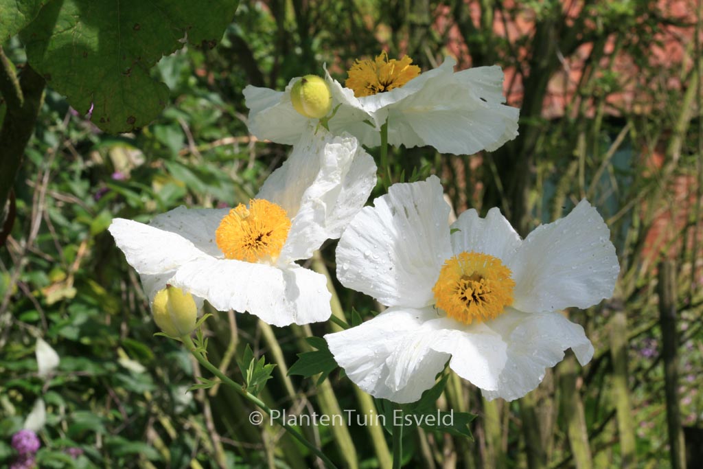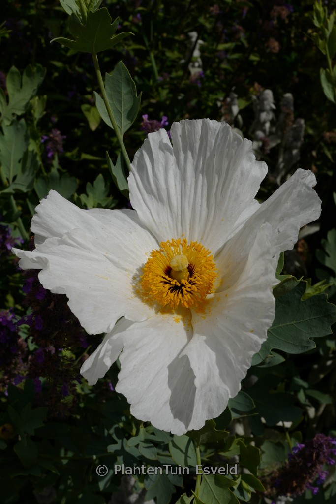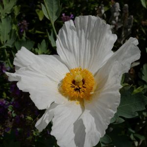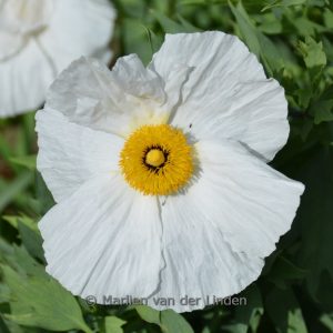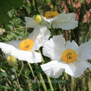 Kalifornischer Scheinmohn; sonniger, trockener Standort. Pflanzenhöhe n. 10 Jahren 1 meter. Die Blütenfarbe ist silberweiss. Die Blütezeit ist Juni – Juli. Diese Pflanze ist winterhart. Anzahl pro Qm : 2. Volksname : Spiegeleipflanze . Der Ausfall bei Romneya kann besonders gross sein, wir können die Verantwortung dafür nicht übernehmen. . Diese Pflanze hat die folgende Auszeichnung: AGM, Award of Garden Merit, 2002. . Nur auf Vorbestellung lieferbar.