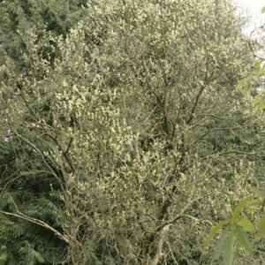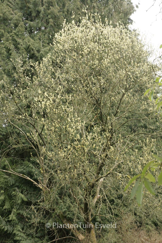 Asch- o. Grau-Weide; breiter, dichter Grossstrauch. Pflanzenhöhe n. 10 Jahren 5 meter. Die Blütenfarbe ist silbrig/gelb; Honigduft. Die Blütezeit ist Februar – März. Diese Pflanze ist vollkommen winterhart. Volksname : Asch-weide . . Nur auf Vorbestellung lieferbar.