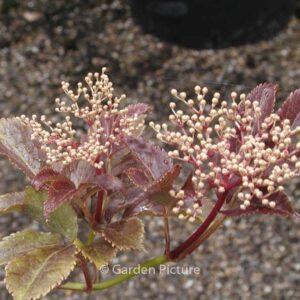Blatt schwarzrot; verzweigt auch ohne Schnitt gut. Pflanzenhöhe n. 10 Jahren 4 meter. Die Blütenfarbe ist rosaweiss; Beeren schwarz. Die Blütezeit ist Mai – Juni. Diese Pflanze ist vollkommen winterhart. Anzahl pro Qm : 1. Volksname : Schwarzer holunder . Diese Pflanze hat die folgende Auszeichnung: AGM, Award of Garden Merit, 2012. Ist anwesend in unsere Pflanzenladen. Bitte sehen Sie im Aktuelle Vorrat.
