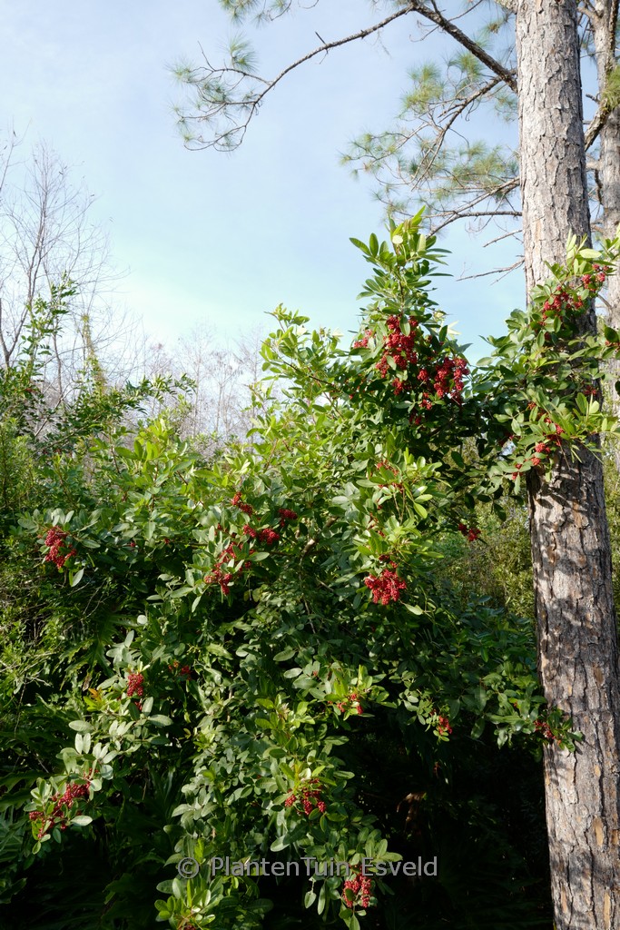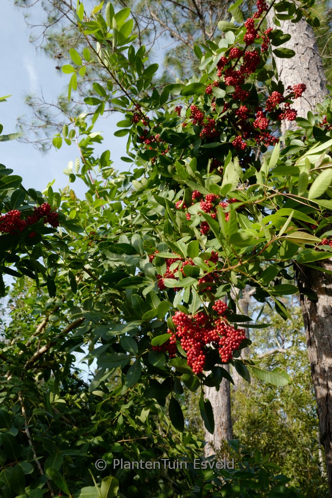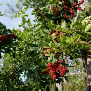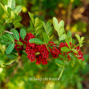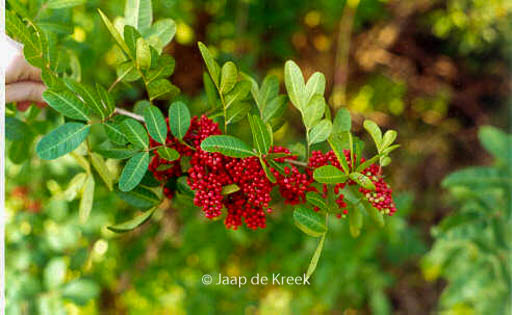 Brasilianischer Pfeffer-Baum; würzig riechendes,. Pflanzenhöhe n. 10 Jahren 3 m. Die Blütenfarbe ist gelblich. Die Blütezeit ist Mai – Juni. Diese Pflanze ist nicht sehr winterhart. Anzahl pro Qm : 1. immergrünes Blatt und rosafarbene, essbare Beeren. Im Wuchs breiter als Schinus molle und mit kräftigeren Zweigen . . Nur auf Vorbestellung lieferbar.