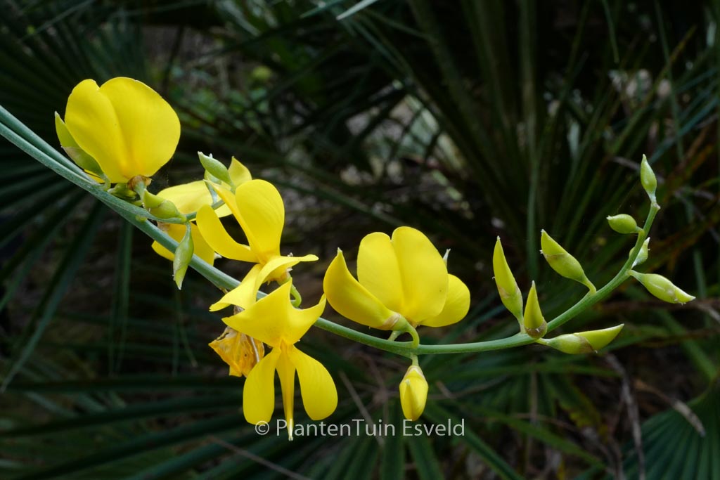 Pfriemenginster; aufrecht, breitbuschig; Mittelmeergebiet. Pflanzenhöhe n. 10 Jahren 2,5 meter. Die Blütenfarbe ist leuchtend gelb (stark duftend). Die Blütezeit ist Mai. Diese Pflanze ist winterhart. Anzahl pro Qm : 2. Volksname : Spanischer ginster . Diese Pflanze hat die folgende Auszeichnung: AGM, Award of Garden Merit, 1993. Ist anwesend in unsere Pflanzenladen. Bitte sehen Sie im Aktuelle Vorrat.