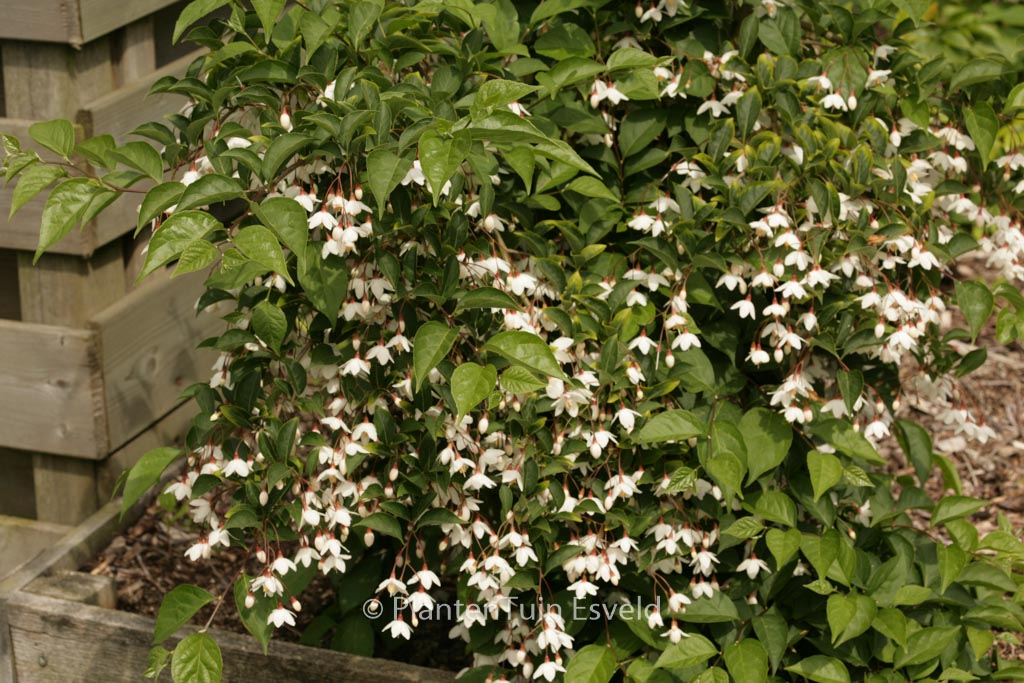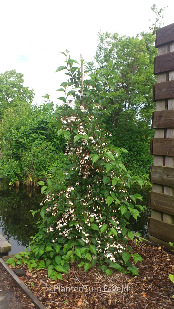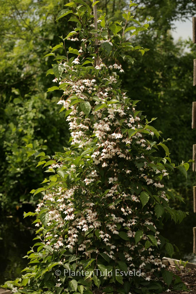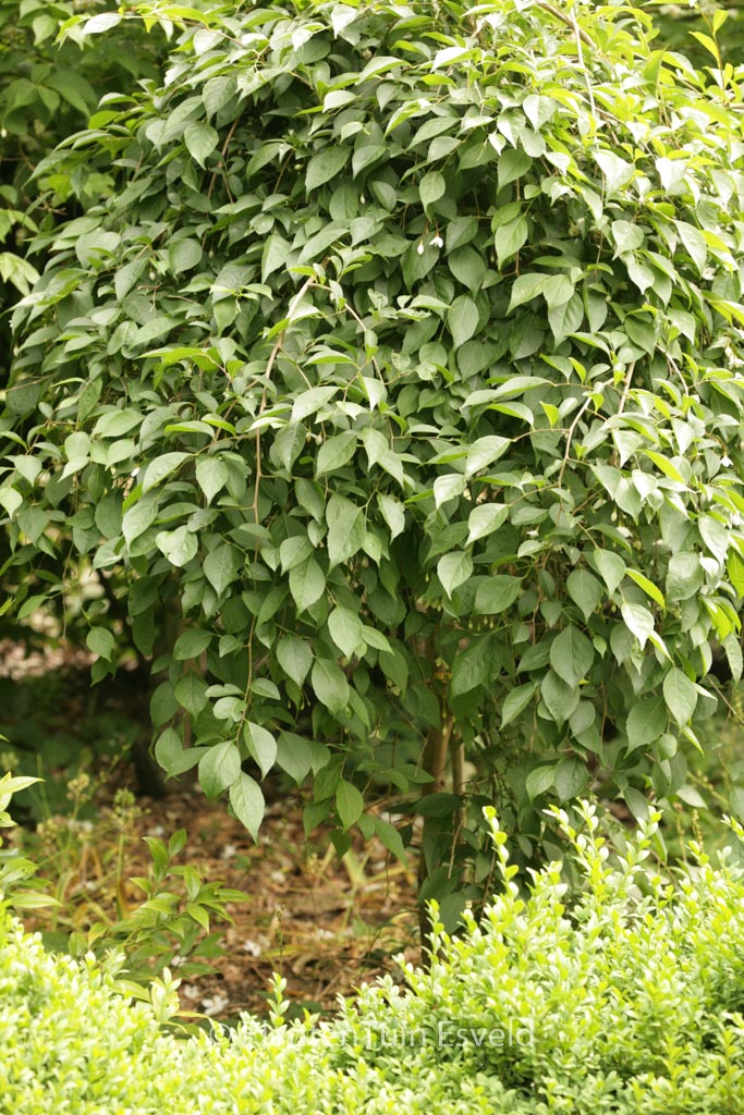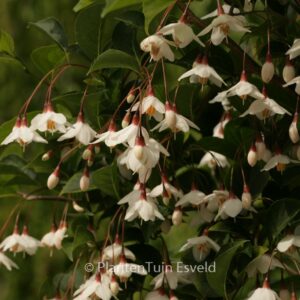 Zierliche Trauerform mit pilzförmigem Habitus. Pflanzenhöhe n. 10 Jahren 1 meter. Die Blütenfarbe ist weiss. Die Blütezeit ist Mai – Juni. Diese Pflanze ist vollkommen winterhart. Anzahl pro Qm : 1. Volksname : Japanischer storaxbaum . . Nur auf Vorbestellung lieferbar.