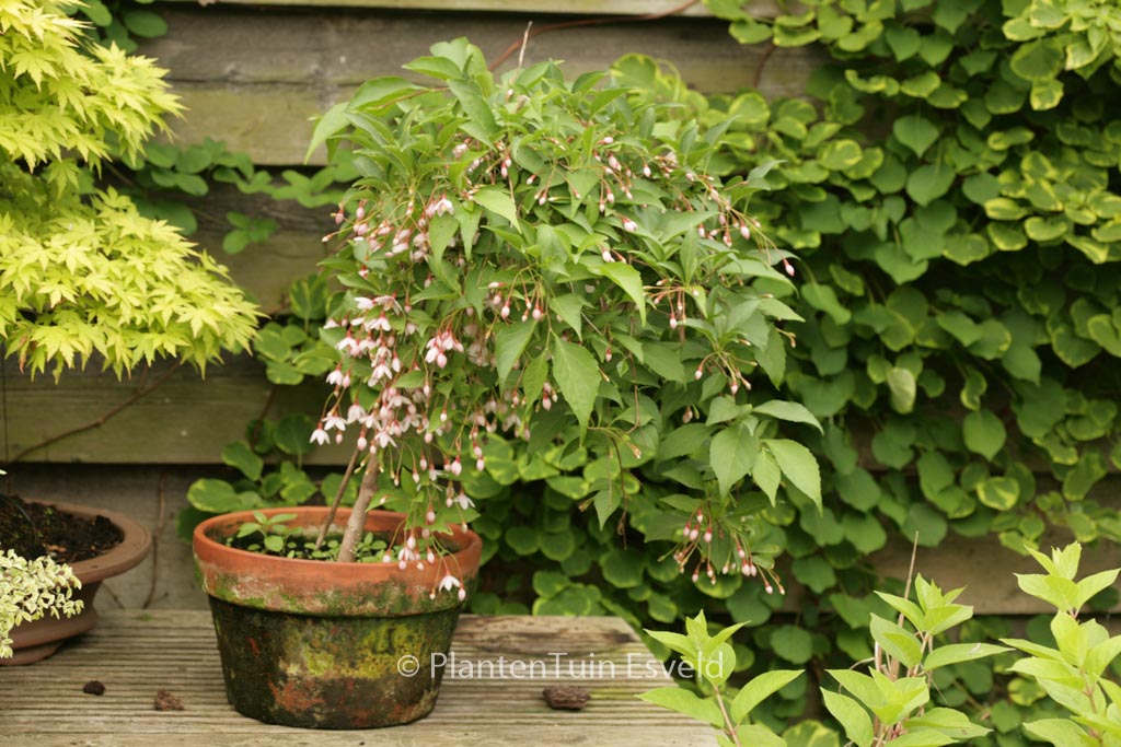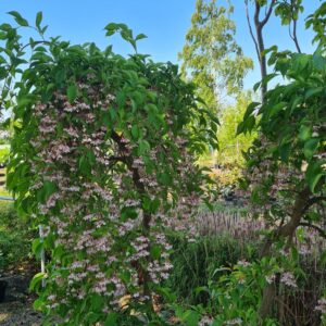 Sehr zierliche Trauerform der rosablühenden Ausgabe. Pflanzenhöhe n. 10 Jahren 1 meter. Die Blütenfarbe ist rosa. Die Blütezeit ist Mai – Juni. Diese Pflanze ist winterhart. Volksname : Japanischer storaxbaum . Ist anwesend in unsere Pflanzenladen. Bitte sehen Sie im Aktuelle Vorrat.
