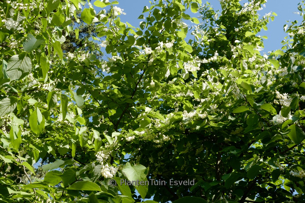 Wohlriechende Blüten in leicht nickenden Trauben. Pflanzenhöhe n. 10 Jahren 4 meter. Die Blütenfarbe ist weiss. Die Blütezeit ist Mai – Juni. Diese Pflanze ist vollkommen winterhart. Anzahl pro Qm : 1. Volksname : Rundblättriger storaxbaum Mögliche Alternative : Styrax hemsleyanus. Wichtigster Unterschied: Styrax hemsleyanus reicher blühend, kleiner. . . Nur auf Vorbestellung lieferbar.