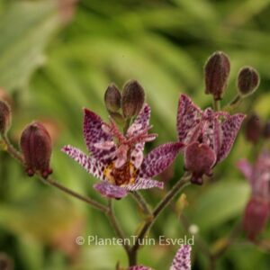 Krötenlilie mitexotisch anmutenden Blüten. Pflanzenhöhe rund 75 Cm. Die Blütenfarbe ist weiss mit dunkelroten Tupfen. Die Blütezeit ist August – September. Diese Pflanze ist winterhart. Volksname : Taiwan krötenlilie . . Nur auf Vorbestellung lieferbar.
