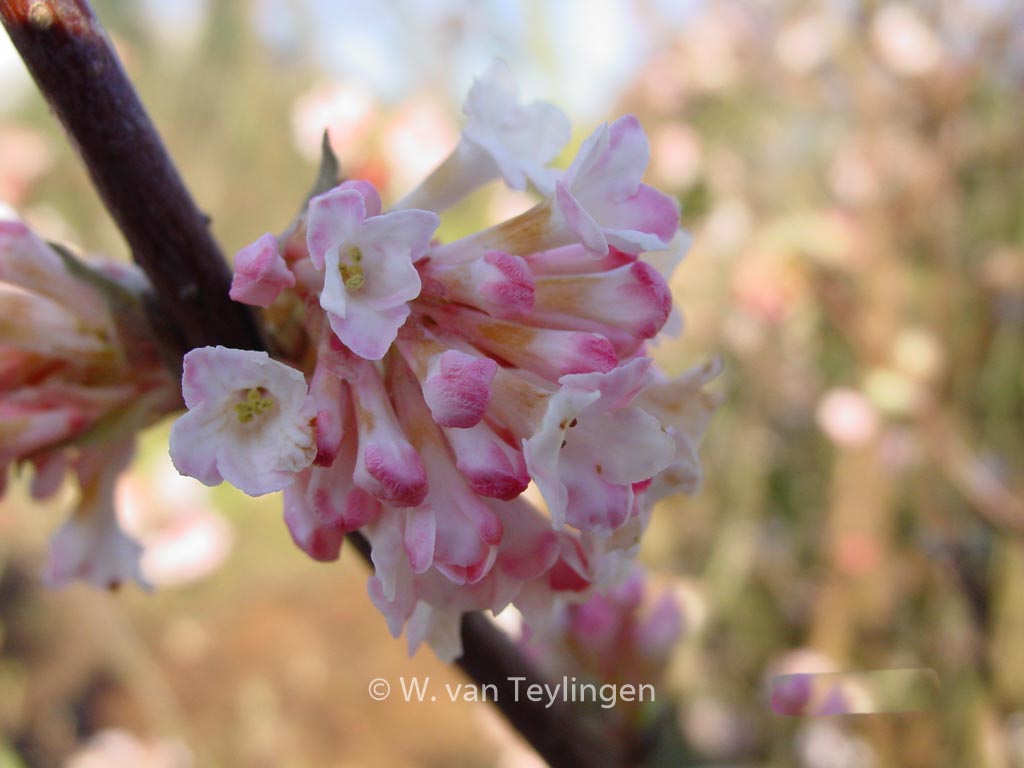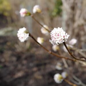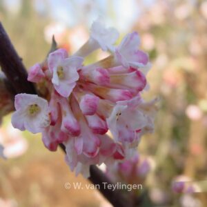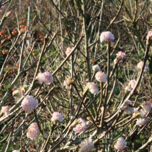 Winterblüher mit duftenden Blüten; rote Herbstfarbe. Pflanzenhöhe n. 10 Jahren 2 metere. Die Blütenfarbe ist weiss. Die Blütezeit ist Januar – März. Diese Pflanze ist vollkommen winterhart. Volksname : Schneeball . . Nur auf Vorbestellung lieferbar.