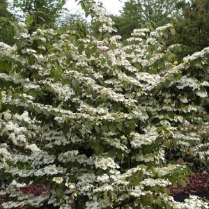 Besonders reichhaltiger roter Fruchtschmuck im Herbst. Pflanzenhöhe n. 10 Jahren 2 meter. Die Blütenfarbe ist weiss (Schirmblüten). Die Blütezeit ist Mai – Juni. Diese Pflanze ist vollkommen winterhart. Anzahl pro Qm : 1. Volksname : Japanischer schneeball Mögliche Alternative : Viburnum plicatum ‚Mariesii‘. Wichtigster Unterschied: fast dasselbe. . Nur auf Vorbestellung lieferbar.