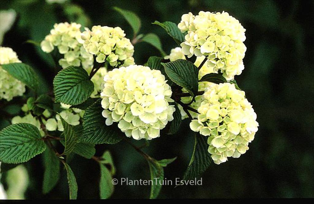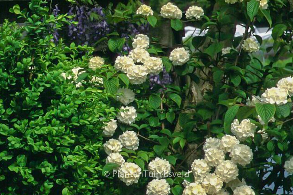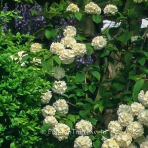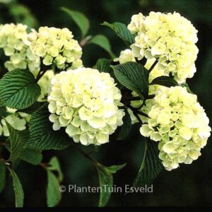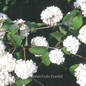 Zahlreiche sterile Ballblüten; Zweige waagerecht. Pflanzenhöhe n. 10 Jahren 125 Zm. Die Blütenfarbe ist weiss. Die Blütezeit ist Mai. Diese Pflanze ist winterhart. Anzahl pro Qm : 1. Volksname : Japanischer schneeball . Diese Pflanze hat die folgende Auszeichnung: 3 Sternen (ausgezeichnet) Beprobung von der KVBC Niederlande 1998. . Nur auf Vorbestellung lieferbar.
