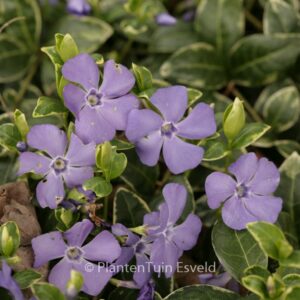 Dunkelgrünes Laub mit feinem weissen Rand. Pflanzenhöhe 15 cm. Die Blütenfarbe ist violettblau. Die Blütezeit ist April – Mai. Diese Pflanze ist winterhart. Anzahl pro Qm : 7. Volksname : Kleines immergrün . Diese Pflanze hat die folgende Auszeichnung: AGM, Award of Garden Merit, 2012. . Ist anwesend in unsere Pflanzenladen. Bitte sehen Sie im Aktuelle Vorrat.